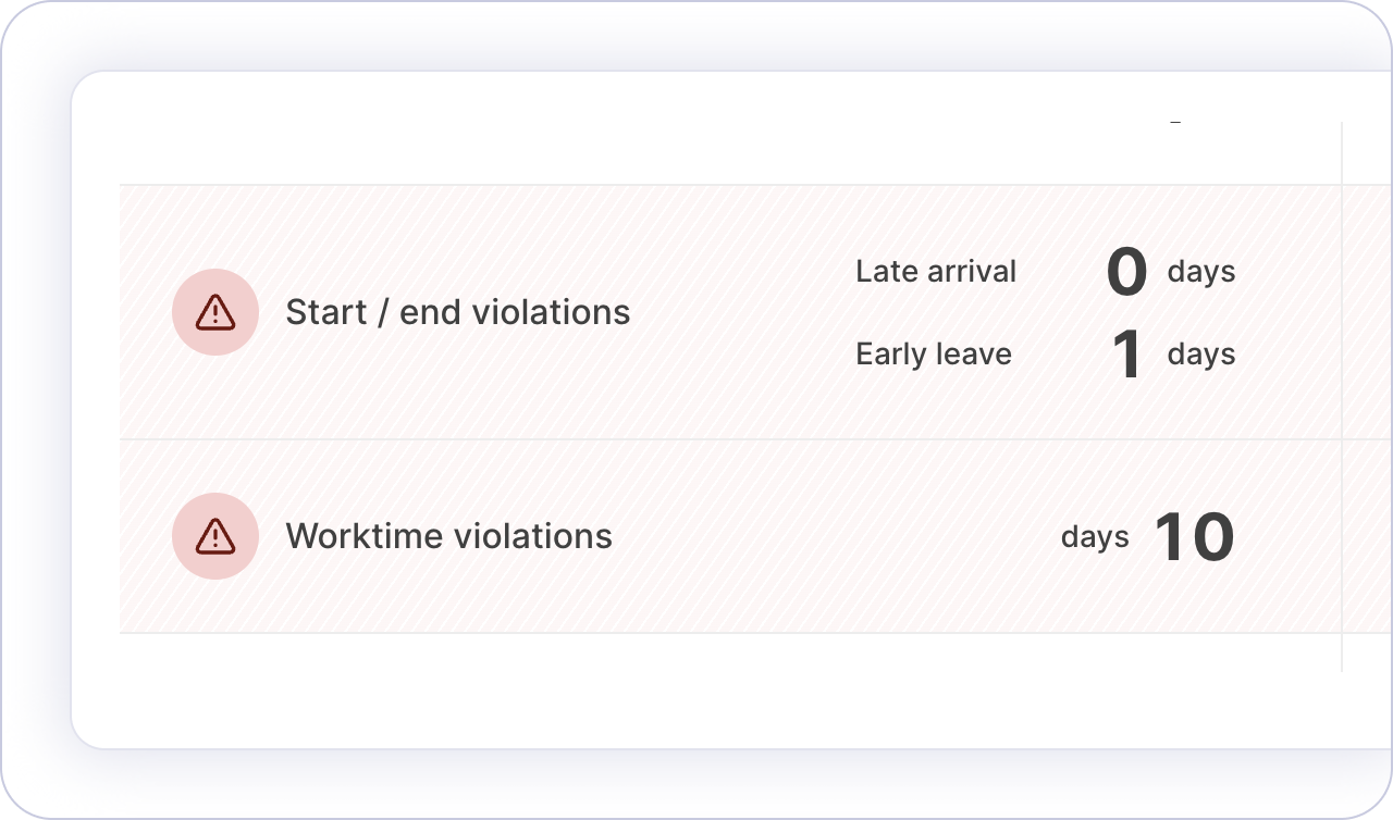 Get notified about late arrivals, early departures, missed targets, and overtime spikes so issues surface before payroll.
