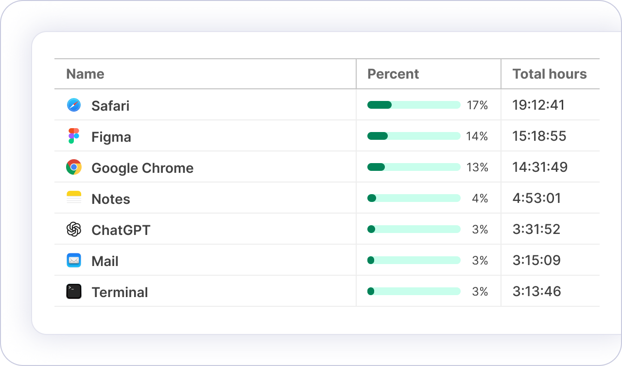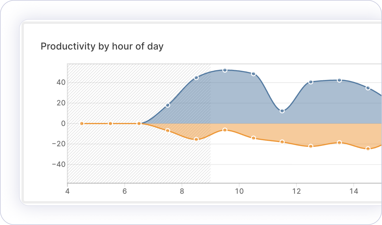 Reveals the periods when users are most engaged and productive. You can view this data on an individual basis, for specific teams, or across the entire company.