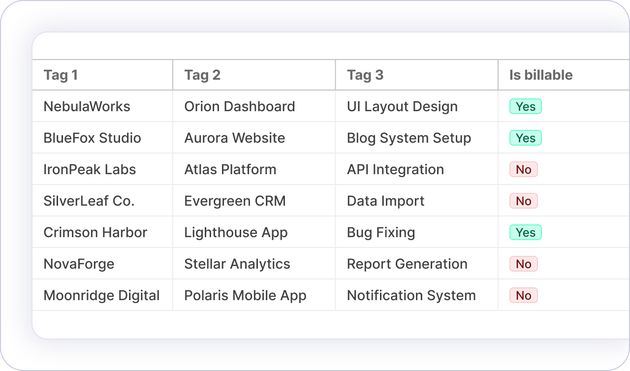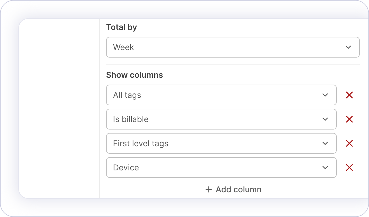 Create the kind of work report your client expects. Customize columns, rounding, grouping, and get insights into the applications, websites, or activities used during the reported time.
