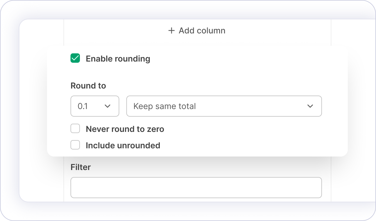 Apply nearest, top, bottom, or keep-same-total rounding rules so invoiced totals meet contractual requirements without losing the precision of the underlying data.