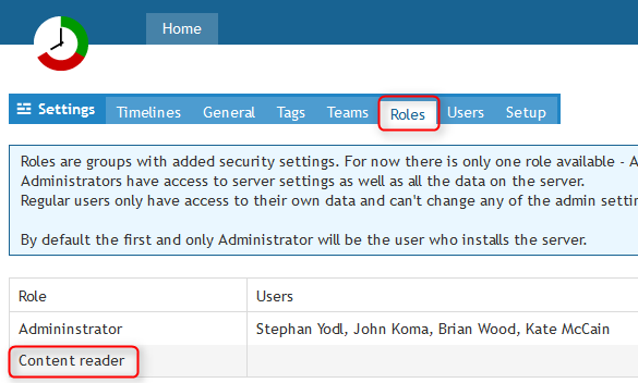 Up until now ManicTime server had only two roles, Administrator and User. Now there is a new role, Content reader.