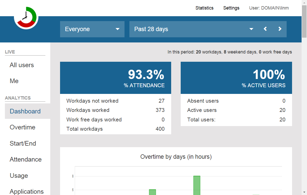 Dashboard is the new home page of ManicTime server and we tried to include the most important information.