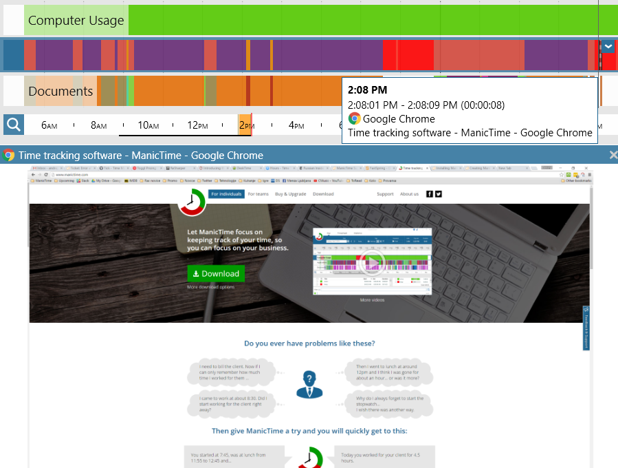 For example they are very useful in remote desktop applications like Remote desktop, TeamViewer, where ManicTime doesn't show a lot of data.