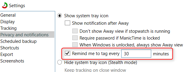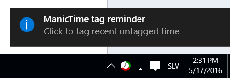 Every X minutes a Windows notification will pop up, reminding you to tag.