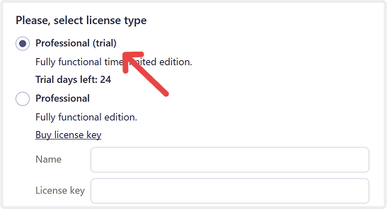 If you later decide to purchase a license, you can simply enter it in Administration section on the server, and it will automatically apply to all connected clients.